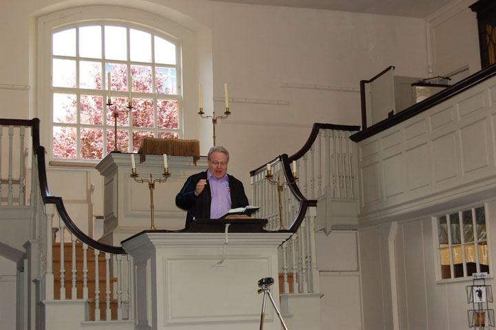 The inspiration for so many works came from everywhere. "A Charge to Keep I Have" and fifteen other hymns followed the study of Leviticus. His own conversion prompted "And Can It Be That I Should Gain" while the anniversary of that conversion inspired "O For a Thousand Tongues to Sing". But most of his poems came from ordinary occurrences in life: nature, spoken phrases, lessons learned, inward feelings of gratitude, etc. The Wesley's were opposed to instrumental music during the services. To quote John, "I have no objection to instruments of music in our worship, provided they are neither seen nor heard." Leading a Wesley hymn from the leader's pulpit in the Wesleyan Chapel, Bristol, England (photo by Karen Hughes) References: Adam Clarke's Commentary 1832 A Hymn is Born - Bonner / Broadman Press 1959 Hymns & History - McCann / ACU Press 1997 Then Sings My Soul - Morgan / Thomas Nelson Publishers 2003 Stories of Hymns We Love - Rudin / John Rudin & Co. Inc. 1941 A Song if Born - Taylor / Taylor Publishing 2004 A Literary & Hymn Pilgrimage - Dr. Jerry Rushford 2011 |